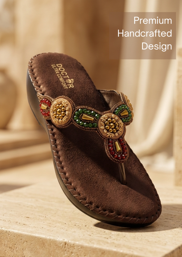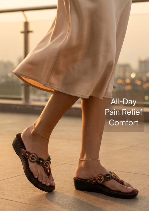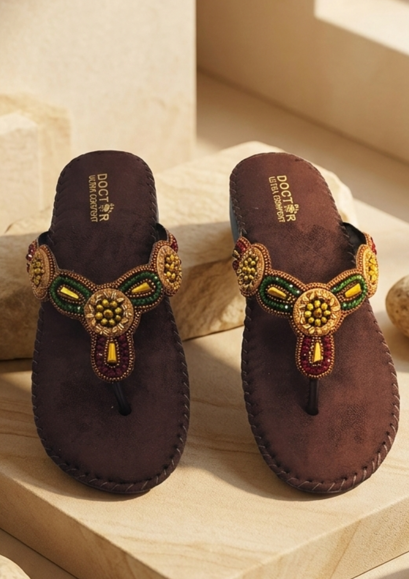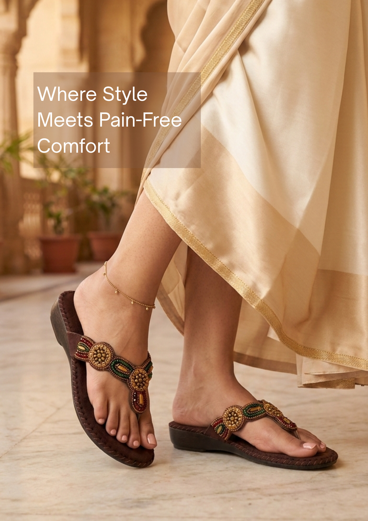 The extra-soft base helps reduce pressure on your feet, giving you effortless comfort with every step. Its lightweight design ensures easy movement, while the elegant handcrafted upper with beautiful detailing adds a rich, stylish touch to your look.