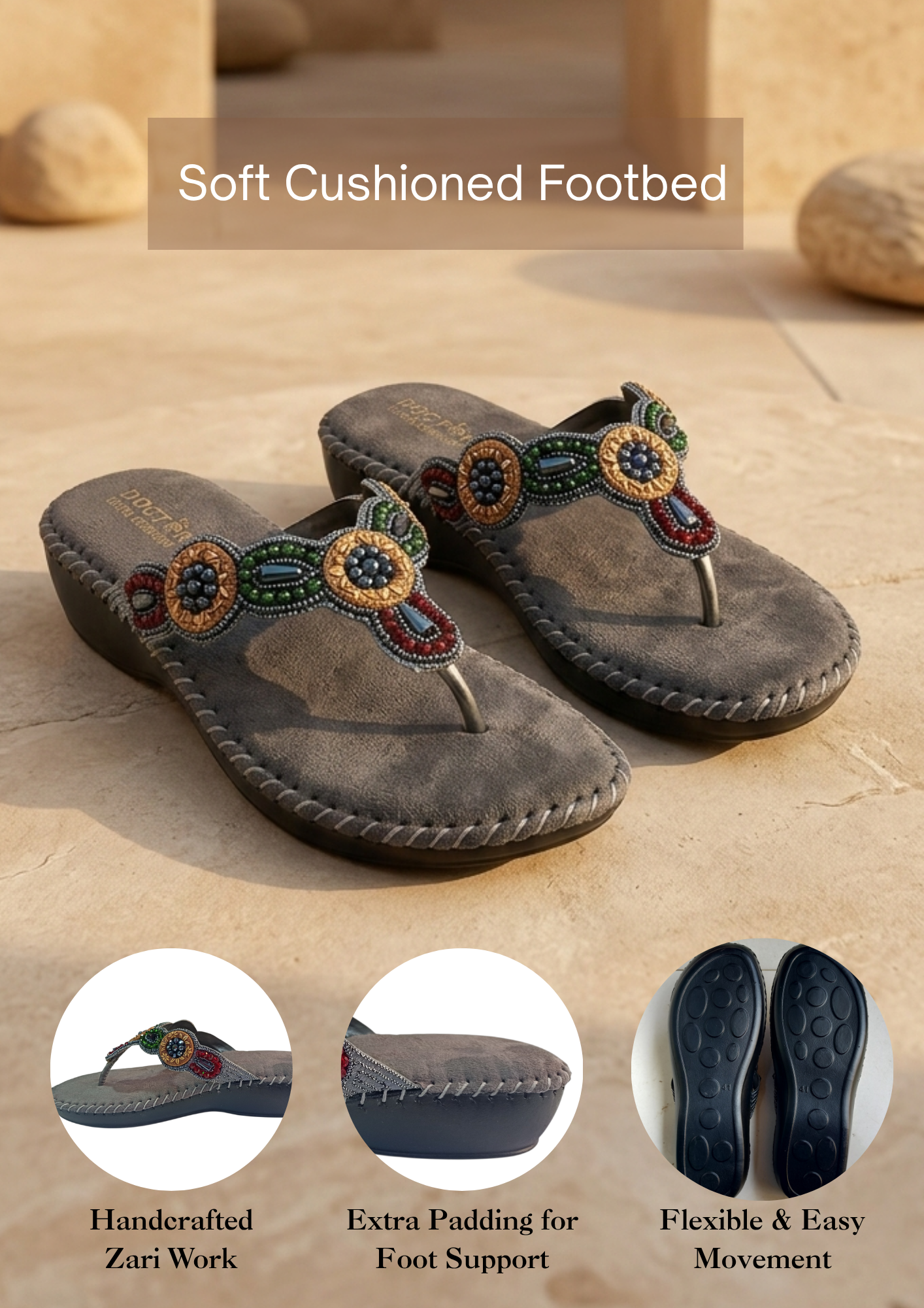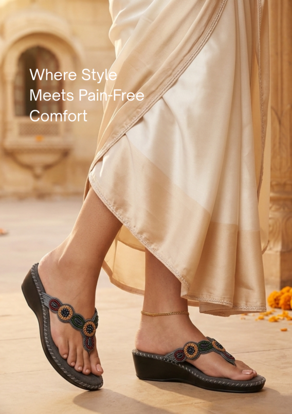 The extra-soft base helps reduce pressure on your feet, giving you effortless comfort with every step. Its lightweight design ensures easy movement, while the elegant handcrafted upper with beautiful detailing adds a rich, stylish touch to your look.